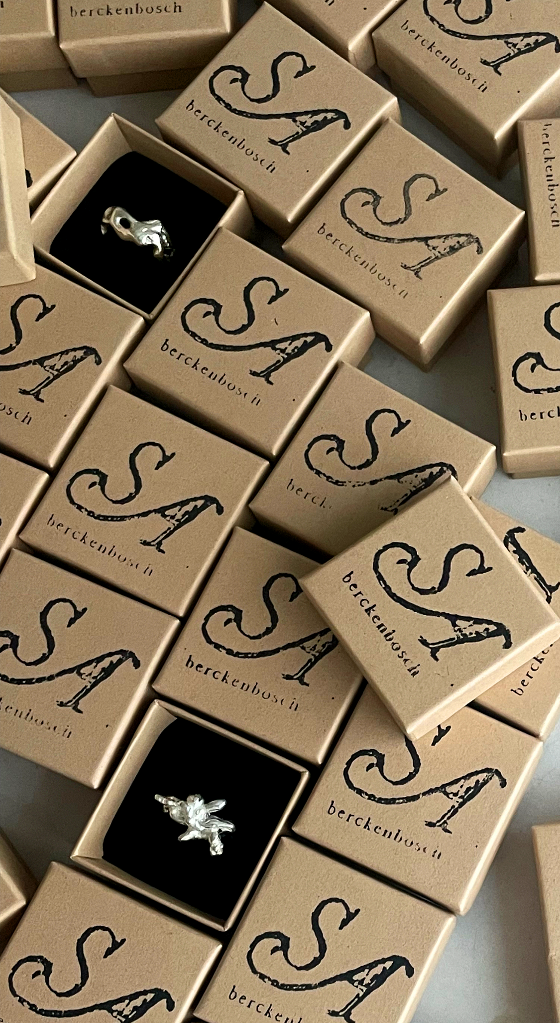 All pieces are crafted in 925 sterling silver, with the option to have them gold-plated or fully made in gold. She brings her creations to life using the lost-wax casting method, combined with traditional goldsmithing techniques.