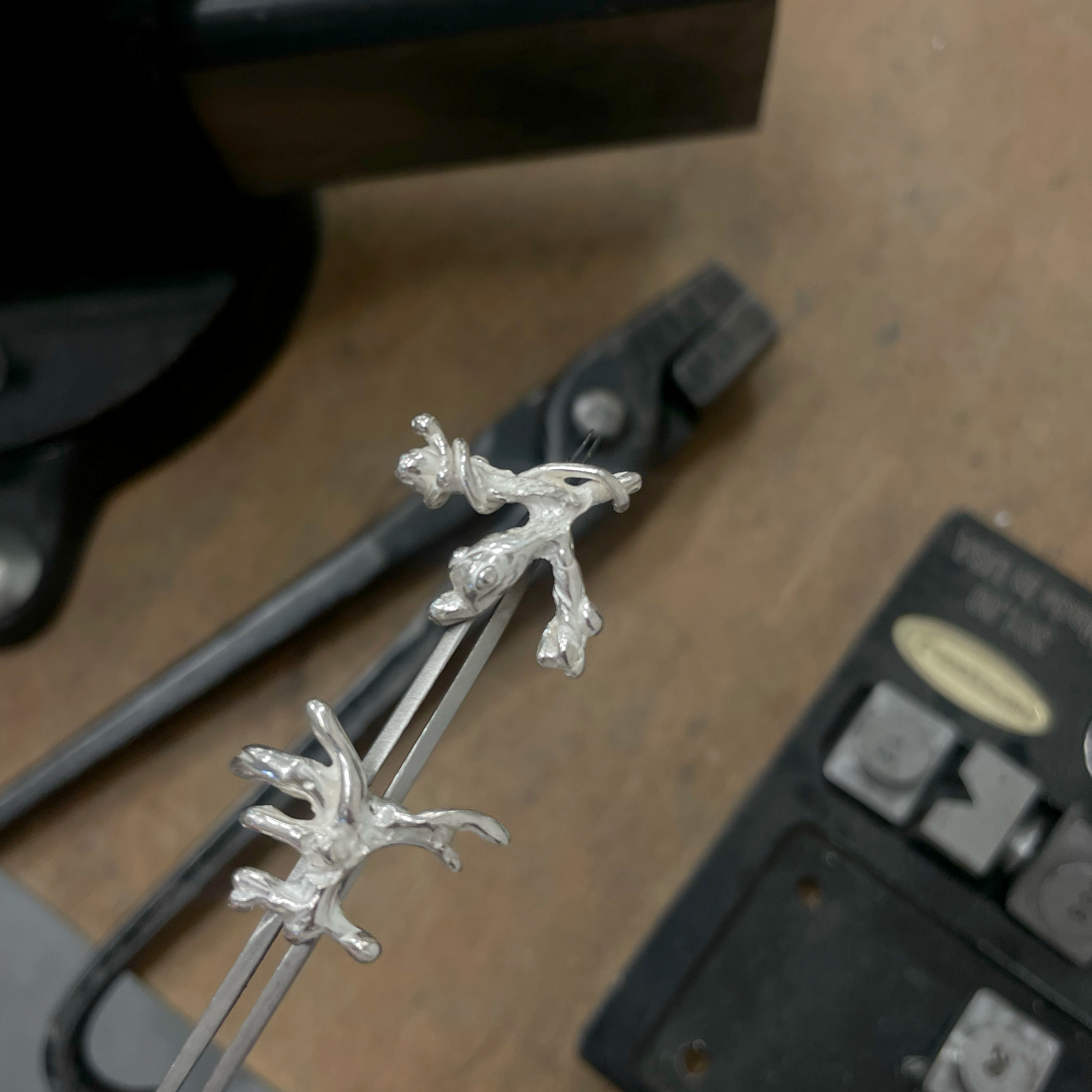 Each piece is individually made using traditional goldsmithing techniques and the lost-wax method. Every design is one of a kind: once it’s gone, it’s gone.